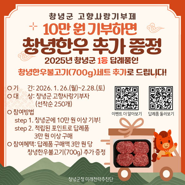 °íÇâ»ç¶û±âºÎÁ¦´Â °³ÀÎÀÌ ÁÖ¼ÒÁö¸¦ Á¦¿ÜÇÑ ´Ù¸¥ Áö¹æÀÚÄ¡´Üü¿¡ ±âºÎÇÏ¸é ¼¼¾×°øÁ¦¿Í ÇÔ²² Áö¿ª Ư»ê¹° ´ä·ÊǰÀ» ¹ÞÀ» ¼ö ÀÖ´Â Á¦µµ·Î ±ºÀº À̹ø ¼³ ¸íÀý À̺¥Æ®¸¦ ÅëÇØ ±âºÎ Âü¿© È®´ë¿Í ÇÔ²² â³ç Ư»ê¹° È«º¸ È¿°úµµ ±â´ëÇϰí ÀÖ´Ù.