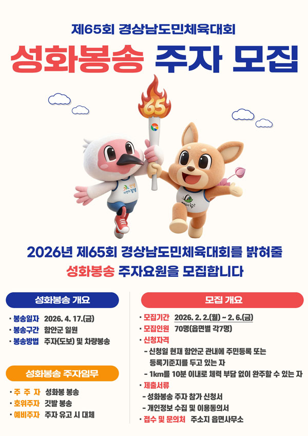 ÇԾȱºÀº Á¦65ȸ °æ³²µµ¹ÎüÀ°´ëȸÀÇ ½ÃÀÛÀ» ¾Ë¸± ¼ºÈºÀ¼Û ÁÖÀÚ¸¦ °ø°³ ¸ðÁýÇÑ´Ù°í 28ÀÏ ¹àÇû´Ù.