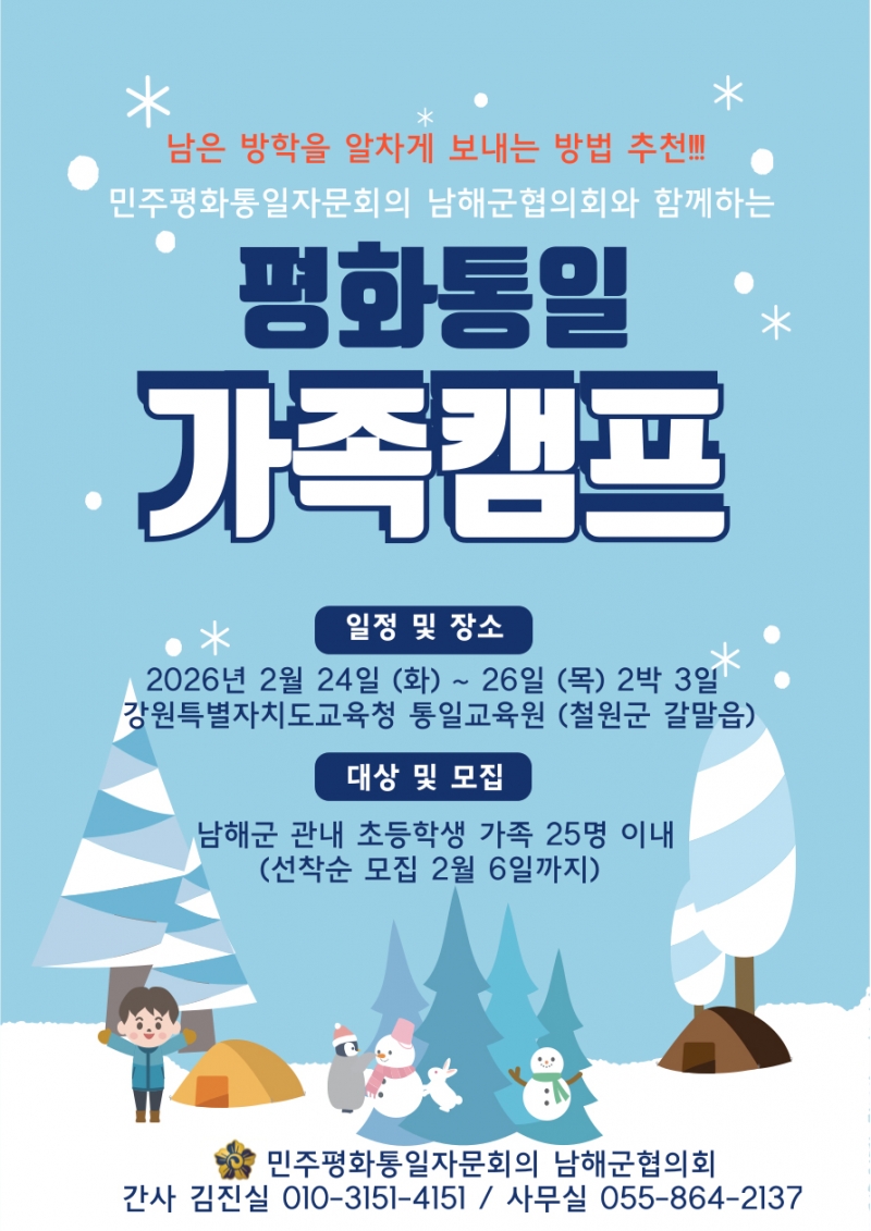 À̹ø °¡Á·Ä·ÇÁ´Â °Ü¿ï¹æÇÐÀ» ¸Â¾Æ ¾ÆÀ̵éÀÌ ÆòÈ¿Í ÅëÀÏÀÇ Àǹ̸¦ ½±°í ÀÚ¿¬½º·´°Ô ÀÌÇØÇÒ ¼ö ÀÖµµ·Ï ±¸¼ºµÈ üÇèÇü ÅëÀÏ ±³À° ÇÁ·Î±×·¥À¸·Î °¡Á·ÀÌ ÇÔ²² Âü¿©ÇØ ¹è¿ì°í ¼ÒÅëÇÒ ¼ö ÀÖ´Â °ÍÀÌ Æ¯Â¡ÀÌ´Ù.