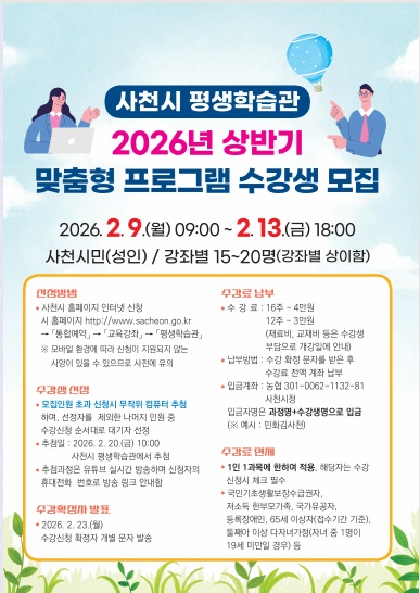 »çõ½Ã Æò»ýÇнÀ°üÀÌ 2026³â »ó¹Ý±â ¸ÂÃãÇü ÇÁ·Î±×·¥ ¼ö°»ýÀ» ¿À´Â 9ÀϺÎÅÍ 13ÀϱîÁö ¸ðÁýÇÑ´Ù°í 3ÀÏ ¹àÇû´Ù.