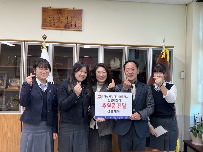 ¸¶»êÁ¦ÀÏ¿©ÀÚ°íµîÇб³´Â Çлý°ú ±³Á÷¿øÀÌ ÇÔ²² ÁøÇàÇÑ ¡®Áø´Þ·¡ ÀåÅÍ Çà»ç¡¯ ¼öÀͱÝÀ» ¸¶»êÀå¾ÖÀκ¹Áö°ü¿¡ Àü´ÞÇß´Ù°í 9ÀÏ ¹àÇû´Ù.