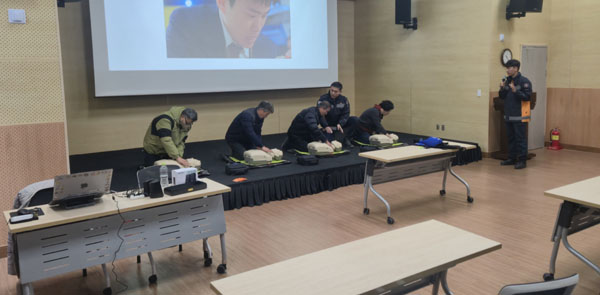 ƯÈ÷ ¸¶³×ŲÀ» Ȱ¿ëÇÑ ½ÉÆó¼Ò»ý¼ú(CPR) ±³À°À» ÅëÇØ Âü¿©ÀÚµéÀÌ ½ÇÁ¦ ÀÀ±Þ»óȲ ¹ß»ý ½Ã ½Å¼ÓÇϰí Á¤È®ÇÏ°Ô ´ëÀÀÇÒ ¼ö ÀÖµµ·Ï ½Ç½À Áß½ÉÀÇ ±³À°ÀÌ ÁøÇàµÆ´Ù.
