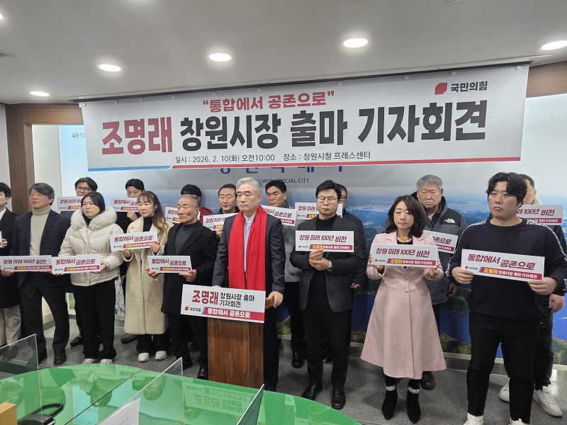 Á¶¸í·¡ Àü â¿øÆ¯·Ê½Ã Á¦2ºÎ½ÃÀåÀÌ 10ÀÏ ½Ãû ºê¸®Çη뿡¼ â¿øÆ¯·Ê½ÃÀå Ã⸶ ¼±¾ð ±âÀÚȸ°ßÀ» ¿°í `ÅëÇÕÀ» ³Ñ¾î °øÁ¸À¸·Î, â¿ø ¹Ì·¡ 100³â ºñÀü`À» ³»°É°í º»°ÝÀûÀÎ ¼±°Å¿îµ¿¿¡ µ¹ÀÔÇÏ°Ú´Ù°í ¹àÇû´Ù.