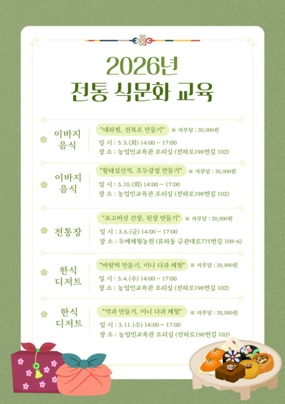 ±èÇØ½Ã´Â ¿À´Â 3¿ù 3ÀϺÎÅÍ 11ÀϱîÁö `2026³â ÀüÅë ½Ä¹®È ±³À°`À» ¿î¿µÇÑ´Ù°í ¹àÇû´Ù.