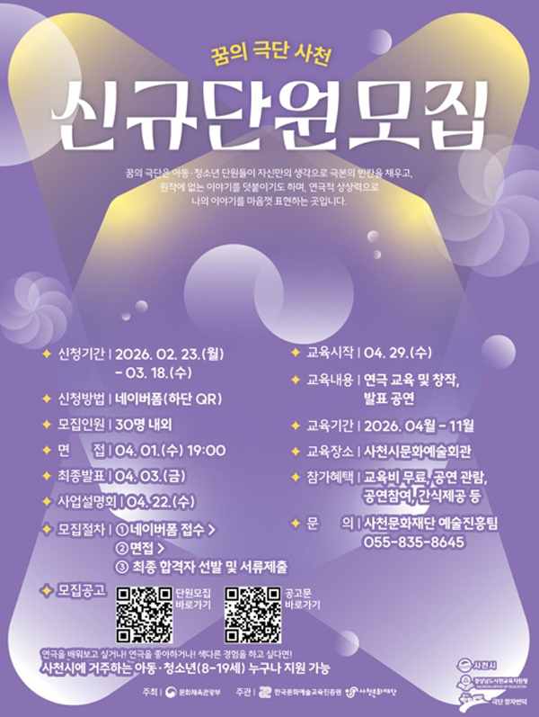 »çõ¹®ÈÀç´ÜÀº ¹®ÈüÀ°°ü±¤ºÎ°¡ ÁÖÃÖÇϰí Çѱ¹¹®È¿¹¼ú±³À°ÁøÈï¿øÀÌ ÁÖ°üÇÏ´Â ¾Æµ¿¤ýû¼Ò³â ¹®È¿¹¼ú±³À° ÇÁ·Î±×·¥ `2026 ²ÞÀÇ ±Ø´Ü »çõ` 2±â ´Ü¿øÀ» ¿À´Â 3¿ù 18ÀϱîÁö ¸ðÁýÇÑ´Ù°í 25ÀÏ ¹àÇû´Ù.