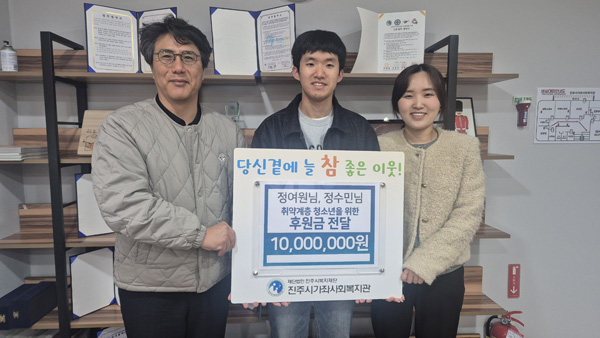 ÁøÁֽú¹ÁöÀç´Ü¿¡¼ ¿î¿µÇÏ´Â ÁøÁֽð¡Á»çȸº¹Áö°üÀº 3ÀÏ Á¤¿©¿ø¤ýÁ¤¼ö¹Î ÇлýÀ¸·ÎºÎÅÍ 1,000¸¸¿øÀÇ ÈÄ¿ø±ÝÀ» Àü´Þ¹Þ¾Ò´Ù°í ¹àÇû´Ù.