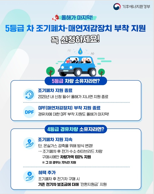 ƯÈ÷ 5µî±Þ ¹èÃâ°¡½º Àú°¨ÀåÄ¡(DPF) ºÎÂø»ç¾÷Àº ¿ÃÇØ¸¦ ¸¶Áö¸·À¸·Î º¸Á¶±Ý Áö¿øÀÌ Á¾·áµÉ ¿¹Á¤ÀÌ´Ù.