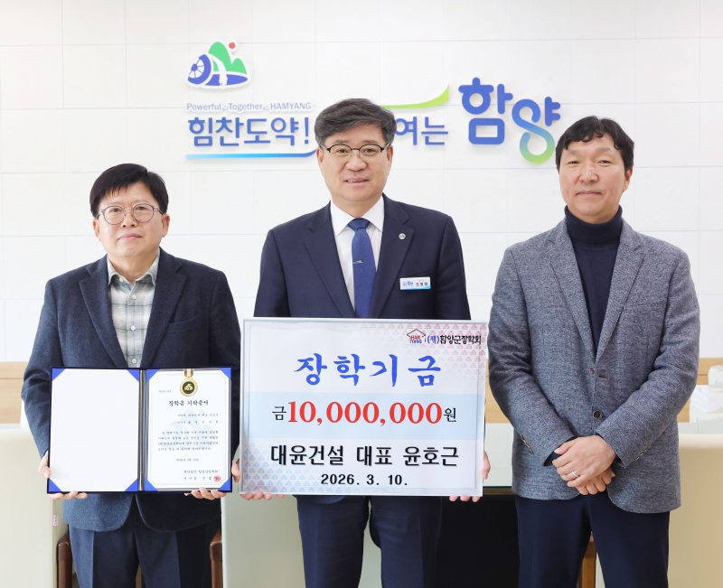 (Àç)ÇԾ籺ÀåÇÐȸ´Â Áö³ 10ÀÏ ´ëÀ±°Ç¼³(ÁÖ) À±È£±Ù ´ëÇ¥°¡ ÀåÇÐ±Ý 1,000¸¸¿øÀ» ±âŹÇß´Ù°í ¹àÇû´Ù.