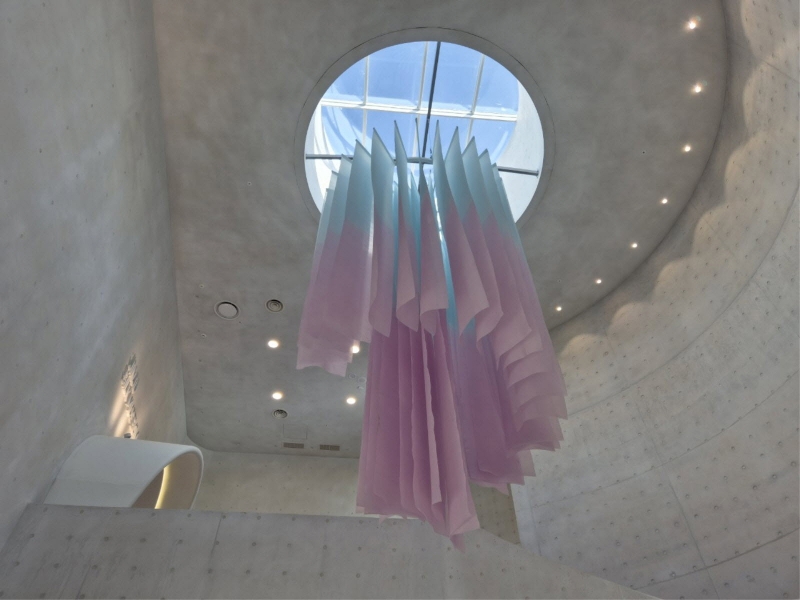 `ÆÄ³ë¶ó¸¶ ¿µ»ó½Ç`¿¡¼´Â 4¸é ¹Ìµð¾î¾ÆÆ®°¡ ºû°ú À½¾Ç, ¿µ»óÀ» °áÇÕÇÑ ¸ôÀÔÇü ÄÜÅÙÃ÷°¡ ÆîÃÄÁö¸ç, ½ÇÅ©ÀÇ ºÎµå·¯¿î È帧°ú Áú°¨À» ½Ã°¢ÀûÀ¸·Î ±¸ÇöÇÑ´Ù. °ø°£ Àüü¸¦ °¨½Î´Â ¿µ»ó ¿¬ÃâÀº »ê¾÷ ¼ÒÀç¿´´ø ½ÇÅ©¸¦ ÇϳªÀÇ ¿¹¼úÀû `¿ÀºêÁ¦(Objet)`·Î ÀçÇØ¼®ÇÑ´Ù.