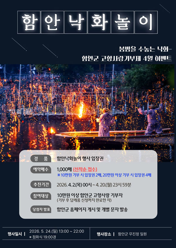 Á¶±ÙÁ¦ ±º¼ö´Â ¡°À̹ø º½¸ÂÀÌ À̺¥Æ®·Î °íÇâ»ç¶û±âºÎÁ¦ Âü¿©µµ Çϰí ÇÔ¾ÈÀÇ ´ëÇ¥ ÃàÁ¦ÀÎ ³«È³îÀ̸¦ ´õ ³Î¸® ¾Ë¸®´Â °è±â°¡ µÇ±æ ±â´ëÇÑ´Ù¡±¸ç ¡°¾ÕÀ¸·Îµµ ´Ù¾çÇÑ È«º¸¿Í Âü¿© ÇÁ·Î±×·¥À¸·Î °íÇâ»ç¶û±âºÎÁ¦ Ȱ¼ºÈ¿Í Áö¿ª°æÁ¦¿¡ Ȱ·ÂÀ» ºÒ¾î³ÖÀ» ¼ö ÀÖµµ·Ï ³ë·ÂÇϰڴ١±°í ¸»Çß´Ù.