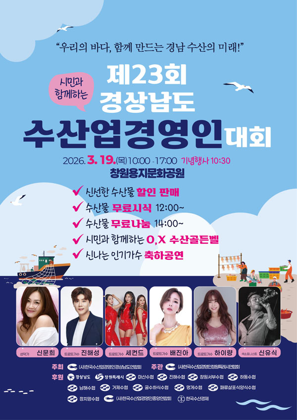 »ç´Ü¹ýÀÎ Çѱ¹¼ö»ê¾÷°æ¿µÀÎ °æ³²µµ¿¬ÇÕȸ°¡ ÁÖÃÖÇϰí â¿øÆ¯·Ê½Ã¿¬ÇÕȸ°¡ ÁÖ°üÇÏ´Â À̹ø ´ëȸ´Â "¿ì¸®ÀÇ ¹Ù´Ù, ÇÔ²² ¸¸µå´Â °æ³² ¼ö»êÀÇ ¹Ì·¡!"¶ó´Â ÁÖÁ¦·Î ¿¸°´Ù.