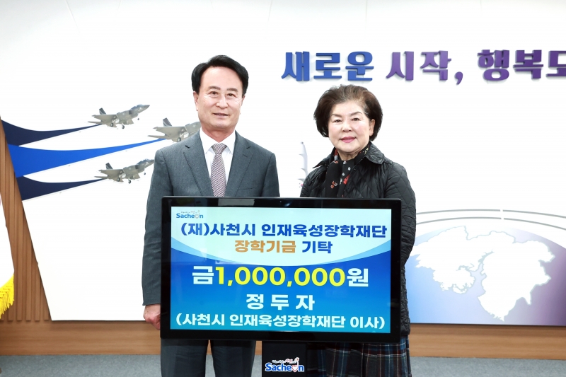 »çõ½Ã ÀÎÀçÀ°¼ºÀåÇÐÀç´ÜÀº Á¤µÎÀÚ À̻簡 Áö³ 16ÀÏ »çõ½Ãû ½ÃÀå½ÇÀ» ¹æ¹®ÇØ Áö¿ª »çȸÀÇ ¹Ì·¡¸¦ À̲ø¾î°¥ ¿ì¼ö ÀÎÀç ¾ç¼º¿¡ ÈûÀ» º¸ÅÂ°í ½Í´Ù¸ç ÀåÇбâ±Ý 100¸¸¿øÀ» ±âŹÇß´Ù°í 17ÀÏ ¹àÇû´Ù.