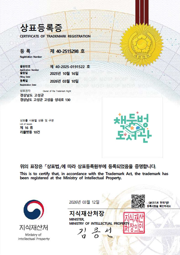 °í¼º±ºÀº Áö³ 16ÀÏ Æ¯ÇãûÀ¸·ÎºÎÅÍ `Ã¥µÒº¡µµ¼°ü` ºê·£µå¿¡ ´ëÇÑ »óÇ¥µî·ÏÁõ ¹ß±ÞÀ» ÃÖÁ¾ ¿Ï·áÇß´Ù°í ¹àÇû´Ù.