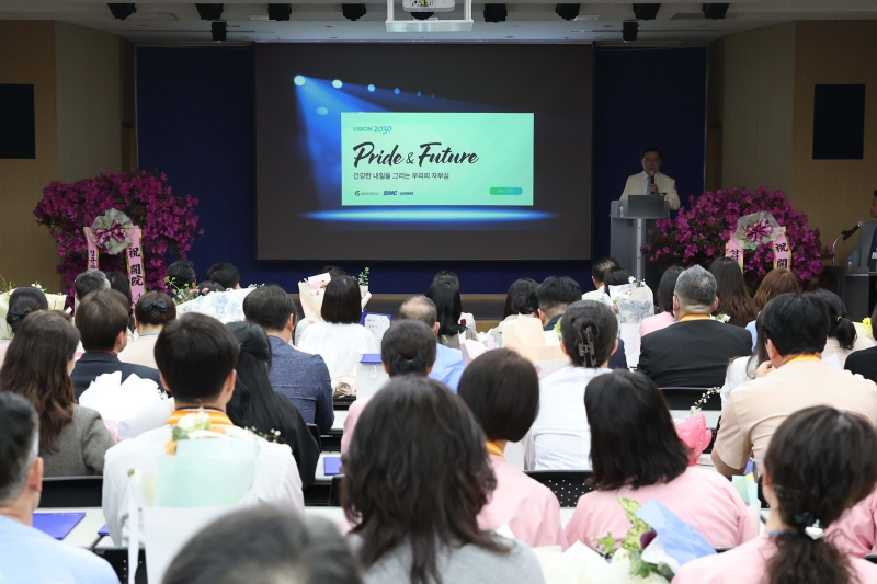 ¿ÀÁÖÇö ¿øÀåÀº ±â³ä»ç¿¡¼ "1981³â °³¿ø ÀÌÈÄ 45³â µ¿¾È `ÃÖÃÊ`¶ó´Â ¿ª»ç¸¦ ¸¸µé¾î ¿Â ÀںνÉÀ» ¹ÙÅÁÀ¸·Î »ï¼ºÀÇ ÀÇ·á°øÇå »ç¾÷À» ´õ¿í Ȱ¹ßÈ÷ ÆîÃijª°¡°í â¿øÆ¯·Ê½Ã À¯ÀÏÀÇ »ó±ÞÁ¾ÇÕº´¿øÀ¸·Î¼ Áö¿ª ÀÇ·áÀÇ ¹àÀº ¹Ì·¡¸¦ ±×·Á°¡´Â º´¿øÀ¸·Î ¼ºÀåÇØ ³ª°¡°Ú´Ù"°í ¹àÇû´Ù.
