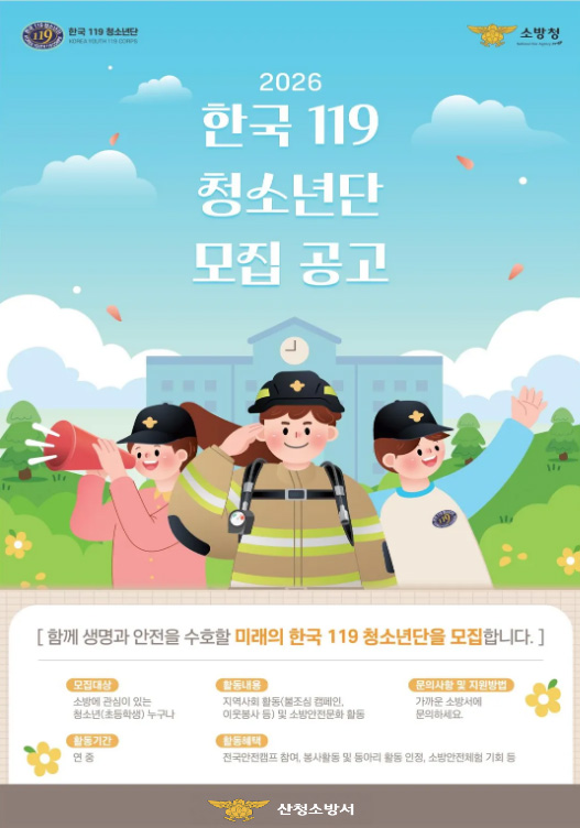 »êû¼Ò¹æ¼´Â ¾ÈÀüÀÇ½Ä ÇÔ¾çÀ» ÅëÇØ ¹Ì·¡ ¼Ò¹æ¾ÈÀü¹®È¸¦ ¼±µµÇÒ `Çѱ¹119û¼Ò³â´Ü`À» ¸ðÁýÇÑ´Ù°í 19ÀÏ ¹àÇû´Ù.
