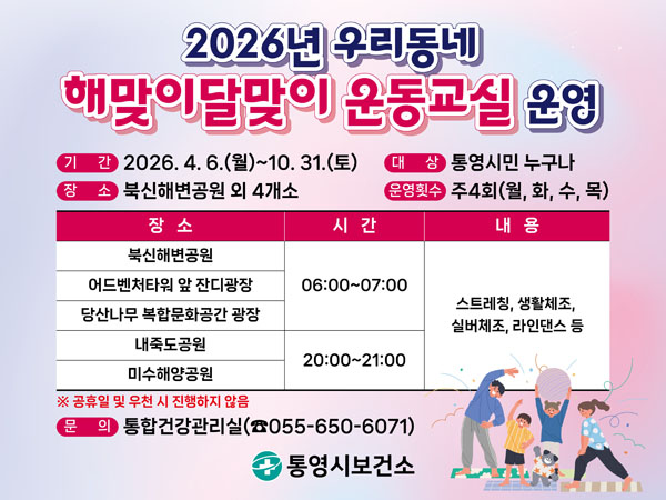 Å뿵½Ã´Â Áö¿ªÁÖ¹ÎÀÇ °Ç°ÁõÁøÀ» µµ¸ðÇϱâ À§ÇØ ¿À´Â 4¿ù 6ÀϺÎÅÍ 10¿ù 31ÀϱîÁö 7°³¿ù°£ `¿ì¸®µ¿³× ÇØ¸ÂÀÌ´Þ¸ÂÀÌ ¿îµ¿±³½Ç`À» ¿î¿µÇÑ´Ù.