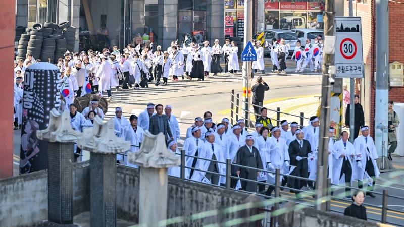 Çà»ç´Â ¿ÀÀü 9½Ã 3¤ý1µ¶¸³¿îµ¿±â³äž¿¡¼ Á¦·ÊÇà»ç¸¦ ½ÃÀÛÀ¸·Î ±ººÏÁßÇб³ ¿îµ¿Àå¿¡¼ Ãâ¹ßÇØ ±ººÏ ½Ã³»¿Í 39»ç´Ü »ï°Å¸®¸¦ °ÅÃÄ °ø¼³¿îµ¿Àå±îÁö À̾îÁö´Â ½Ã°¡ÇàÁø ÀçÇöÇà»ç·Î ÁøÇàµÅ 107³âÀü ±×³¯ÀÇ °¨µ¿À» ÀçÇöÇß´Ù.