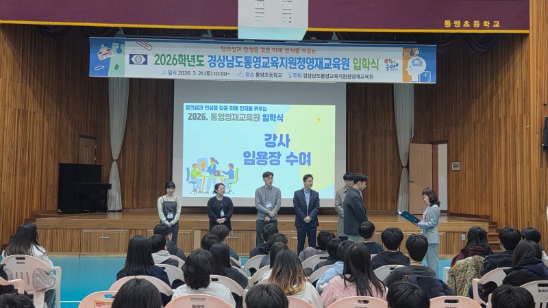Å뿵±³À°Áö¿øÃ»Àº Áö³ 21ÀÏ ¿ÀÀü 10½Ã Å뿵ÃʵîÇб³ üÀ°°ü¿¡¼ 2026Çг⵵ Å뿵±³À°Áö¿øÃ»¿µÀç±³À°¿ø ÀÔÇнÄÀ» °³ÃÖÇß´Ù.