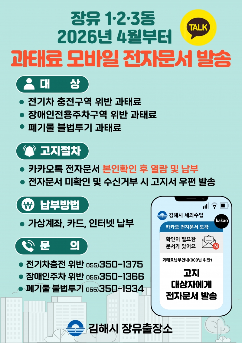 ±èÇØ½Ã ÀåÀ¯ÃâÀå¼Ò´Â ¿À´Â 4¿ù 1ÀϺÎÅÍ °úÅÂ·á °íÁö¼ ¸ð¹ÙÀÏ ÀüÀÚ¹®¼ ¹ß¼Û ¼ºñ½º¸¦ µµÀÔÇÑ´Ù°í ¹àÇû´Ù.