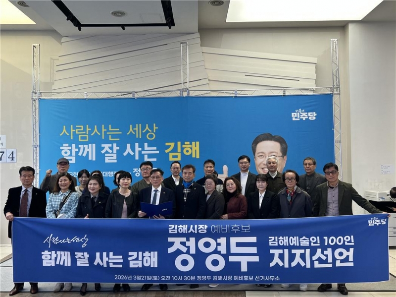 ±èÇØ¿¡¼ Ȱµ¿ÇÏ´Â ¹®È¿¹¼úÀÎ 100ÀÎÀÌ Áö³ 21ÀÏ ¿ÀÀü Á¤¿µµÎ ¿¹ºñÈĺ¸ »ç¹«½Ç¿¡¼ ±âÀÚȸ°ßÀ» ¿°í "¹®È¿¹¼ú Á¤Ã¥ÀÇ Á߿伺À» ±íÀÌ ÀνÄÇϰí ÀÖ´Â ¹ÎÁÖ´ç Á¤¿µµÎ ±èÇØ½ÃÀå ¿¹ºñÈ常¦ ÁöÁöÇÑ´Ù"°í ¹àÇû´Ù.