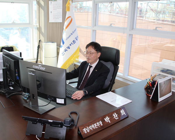 | ¹ÚÂùÈñ Çѱ¹³ó¾îÃ̰ø»ç °æ³²Áö¿ªº»ºÎÀåÀÌ Áý¹«½Ç¼ ¾÷¹«¸¦ º¸°í ÀÖ´Ù. |