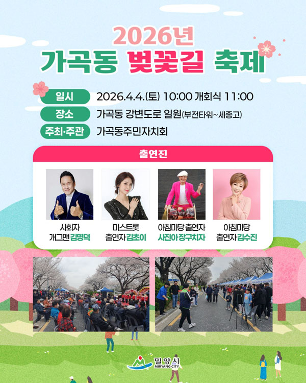 ¹Ð¾ç½Ã °¡°îµ¿ ÁÖ¹ÎÀÚġȸ´Â ¿À´Â 4ÀÏ °¡°îµ¿ °º¯µµ·Î(ºÎÀüŸ¿ö~¼¼Á¾°í) ÀÏ¿ø¿¡¼ `2026³â °¡°îµ¿ º¢²É±æ ÃàÁ¦`¸¦ °³ÃÖÇÑ´Ù.
