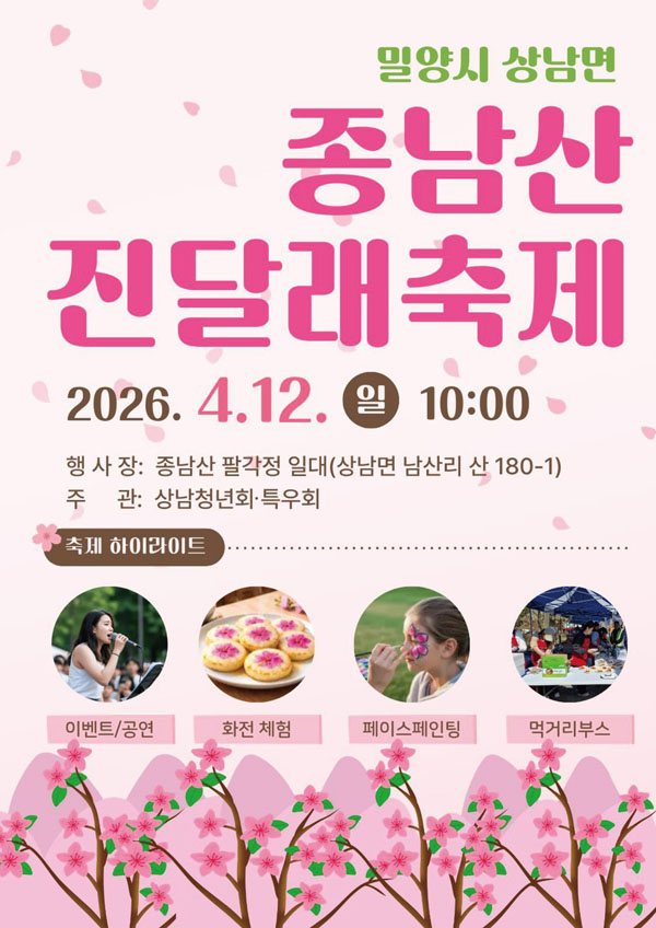 Á¾³²»êÀº ¸Å³â º½ÀÌ¸é »ê Àüü°¡ Áø´Þ·¡·Î ¹°µé¾î Àå°üÀ» ÀÌ·ç´Â Áö¿ª ¸í¼Ò·Î, À̹ø ÃàÁ¦¿¡¼´Â ¾Æ¸§´Ù¿î ÀÚ¿¬°æ°üÀ» ¹è°æÀ¸·Î ´Ùä·Î¿î ÇÁ·Î±×·¥ÀÌ ÁøÇàµÈ´Ù.