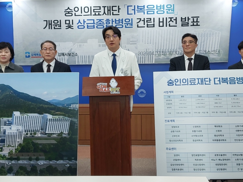 | ¼þÀÎÀÇ·áÀç´Ü ±èÇØº¹À½º´¿øÀº 7ÀÏ ½Ãû ÇÁ·¹½º¼¾ÅÍ¿¡¼ ´õº¹À½º´¿ø °³¿ø°ú ÇâÈÄ »ó±ÞÁ¾ÇÕº´¿ø °Ç¸³ ºñÀüÀ» ¹ßÇ¥ÇÏ°í º´¿ø °³¿ø ½Ã±â¿Í ÇâÈÄ ¿î¿µ ¹æÇâÀ» °ø°³Çß´Ù. |