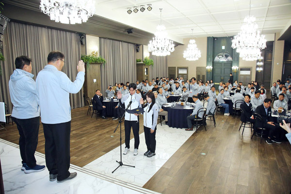 °á´Ü½Ä¿¡´Â Àå±Ý¿ë â¿øÆ¯·Ê½ÃÀå ±ÇÇÑ´ëÇàÀ» ºñ·ÔÇØ ¼ÕÅÂÈ Ã¢¿ø½ÃÀÇȸ ÀÇÀå, ½ÃÀÇ¿ø, Á¾¸ñº° ¼±¼ö¤ýÁöµµÀÚ, üÀ°È¸ ÀÓ¿ø µî 150¿©¸íÀÌ Âü¼®ÇØ ´Ü±âÀü´Þ½ÄÀ» ½ÃÀÛÀ¸·Î °Ý·Á»ç, ¼±¼ö ´ëÇ¥ ¼±¼ ¼øÀ¸·Î ÁøÇàµÆÀ¸¸ç, Âü¼®ÀÚ ¸ðµÎ°¡ ÇϳªµÈ ¸¶À½À¸·Î â¿ø½Ã ¼±¼ö´ÜÀÇ ¼±ÀüÀ» ´ÙÁüÇß´Ù.