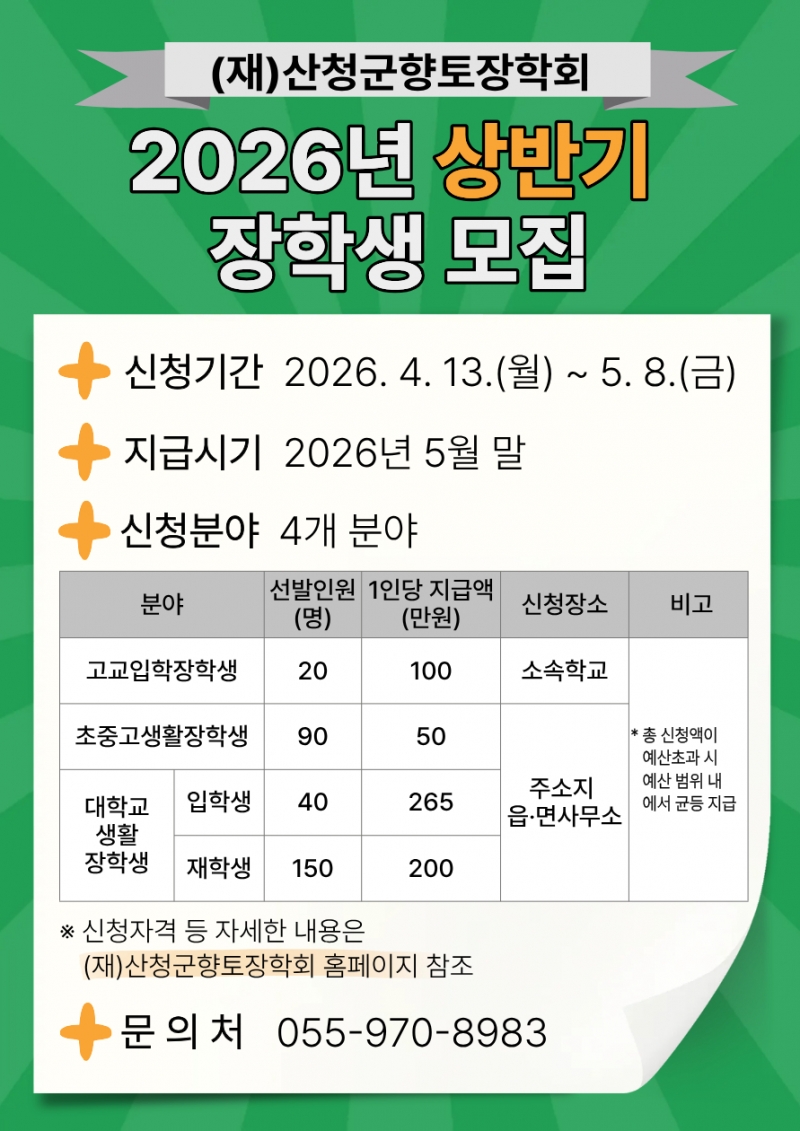 (Àç)»êû±ºÇâÅäÀåÇÐȸ´Â 13ÀϺÎÅÍ 5¿ù 8ÀϱîÁö `»ó¹Ý±â ÀåÇбÝ`À» ½Åû¹Þ´Â´Ù°í 12ÀÏ ¹àÇû´Ù.