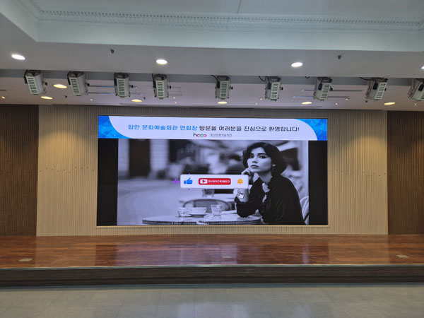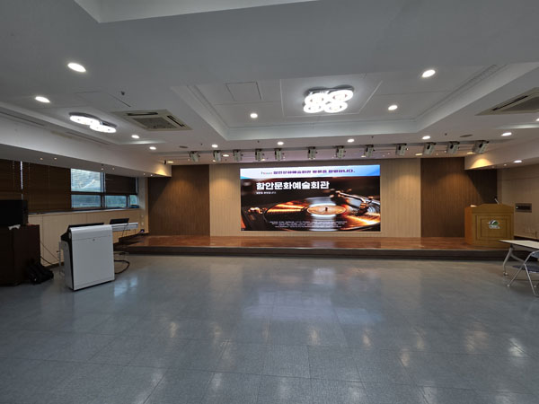ÇԾȹ®È¿¹¼úȸ°üÀº ¿¬È¸ÀåÀÇ ³ëÈÄÈµÈ ºöÇÁ·ÎÁ§Å͸¦ ´ë½ÅÇØ ¼±¸íÇÏ°í ¾ÈÁ¤ÀûÀÎ ¿µ»ó ¼ÛÃâ ȯ°æÀ» Á¦°øÇϱâ À§ÇØ ¹ß±¤´ÙÀÌ¿Àµå(LED) Àü±¤ÆÇ ¼³Ä¡¸¦ ¿Ï·áÇß´Ù°í 13ÀÏ ¹àÇû´Ù.