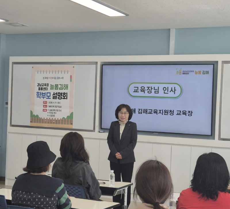 ±èÇØ±³À°Áö¿øÃ»Àº Áö³ 11ÀÏ Çкθð 30¸íÀÌ Âü¼®ÇØ ´Ãº½ ±èÇØ ¿î¿µ °èȹ¿¡ ´ëÇØ µè°í ¾ÆÀ̵éÀÌ »ýȰÇÏ´Â ´Ãº½ ±èÇØ ½Ã¼³µéÀ» µÑ·Á º¸´Â ½Ã°£À» ´Ãº½ ±èÇØ 3Ãþ ÇнÀ½Ç¿¡¼ `´Ãº½ ±èÇØ Çкθð ÃÊû ¼³¸íȸ`¸¦ °³ÃÖÇß´Ù°í ¹àÇû´Ù.