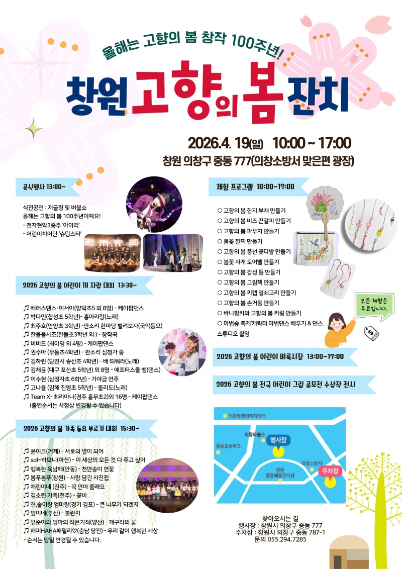 À̳¯ Çà»ç´Â `°íÇâÀÇ º½` 100ÁÖ³âÀ» ÃàÇÏÇϱâ À§ÇØ ½Ã°¡ ÁÖÃÖÇÏ´Â `¿ÃÇØ´Â °íÇâÀÇ º½ 100ÁÖ³âÀÌ¿¹¿ä`¿Í »ç´Ü¹ýÀÎ °íÇâÀǺ½±â³ä»ç¾÷ȸ°¡ ÁÖÃÖÇÏ´Â `°íÇâÀÇ º½ ¾î¸°ÀÌ ³¢ÀÚ¶û´ëȸ`, MBC°æ³²ÀÌ ÁÖÃÖÇÏ´Â `°íÇâÀÇ º½ °¡Á· µ¿¿ä ºÎ¸£±â ´ëȸ`°¡ ÇÑ ÀÚ¸®¿¡¼ °³ÃֵȴÙ.