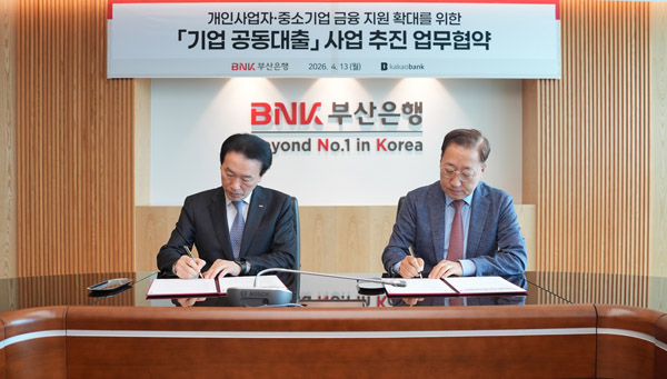 | ±è¼ºÁÖ BNKºÎ»êÀºÇàÀå(¿ÞÂʼ ¿©¼¸ ¹øÂ°)°ú À±È£¿µ īī¿À¹ðÅ© ´ëÇ¥(¿ÞÂʼ Àϰö ¹øÂ°)°¡ Áö³ 13ÀÏ ºÎ»ê½Ã ³²±¸ ºÎ»êÀºÇà º»Á¡¼ ¾÷¹«Çù¾àÀ» ¸Î°í ±â³äÃÔ¿µÀ» Çϰí ÀÖ´Ù. |