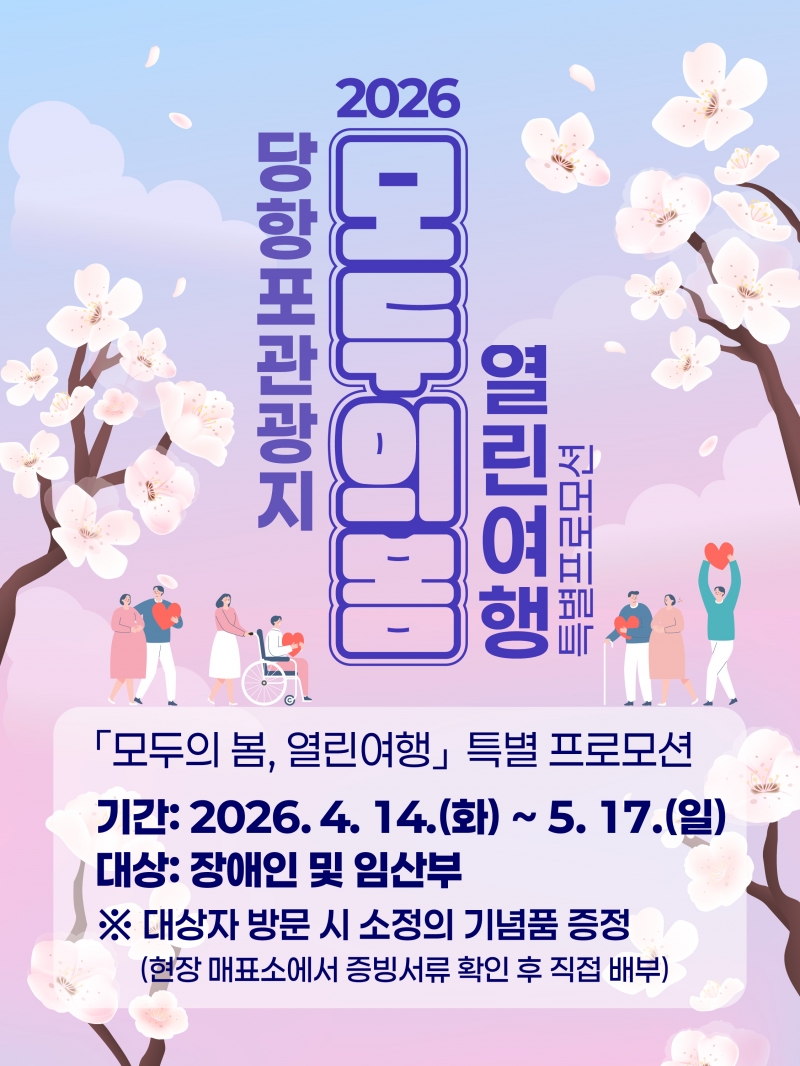 `2026 ¸ðµÎÀÇ º½, ¿¸°¿©Çà` Ưº° Æ÷·Î¸ð¼ÇÀº Çѱ¹°ü±¤°ø»ç°¡ ÁÖ°üÇÏ°í ¿¸°°ü±¤Áö ¿î¿µ ÁöÀÚü ¹× ¹Î°£»ç¾÷ü°¡ ÇÔ²² ¿î¿µÇÏ´Â °ü±¤Ãë¾à°èÃþ Æ¯È ÇÁ·Î¸ð¼ÇÀ¸·Î, Àå¾ÖÀΤý°í·ÉÀÚ µî °ü±¤ ¼Ò¿Ü°èÃþÀÌ º¸´Ù Æí¾ÈÇÏ°Ô ±¹³» °ü±¤Áö¸¦ Áñ±æ ¼ö ÀÖµµ·Ï °¢ Âü¿© ±â°üÀÌ Æ¯È ÇýÅÃÀ» Á¦°øÇÏ´Â ¹æ½ÄÀ¸·Î ¿î¿µµÈ´Ù.