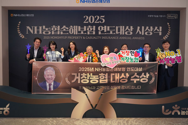| °Åâ³óÇùÀº `2025³â NH³óÇù¼ÕÇØº¸Çè ¿¬µµ´ë»ó ½Ã»ó½Ä`¼ 3³â ¿¬¼Ó »ç¹«¼Ò ¼ö»ó¤ý°³Àκ° ±Ý»ó¤ý¿ì¼ö»óÀ» ¼ö»óÇÏ´Â ¿µ±¤À» ¾È¾Ò´Ù. |