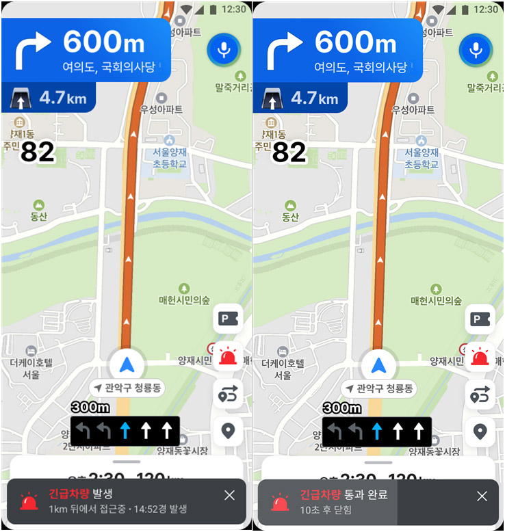 ÀÌ ¼ºñ½º´Â µµ·Î ÁÖÇà Áß ÈĹ濡¼ ¼Ò¹æÂ÷·®ÀÌ Á¢±ÙÇÒ °æ¿ì Ã⵿ »óȲ°ú °Å¸® Á¤º¸¸¦ ³»ºñ°ÔÀÌ¼Ç È¸é°ú À½¼ºÀ¸·Î Áï°¢ ¾È³»ÇÏ´Â °ÍÀÌ ÇÙ½ÉÀÌ´Ù.