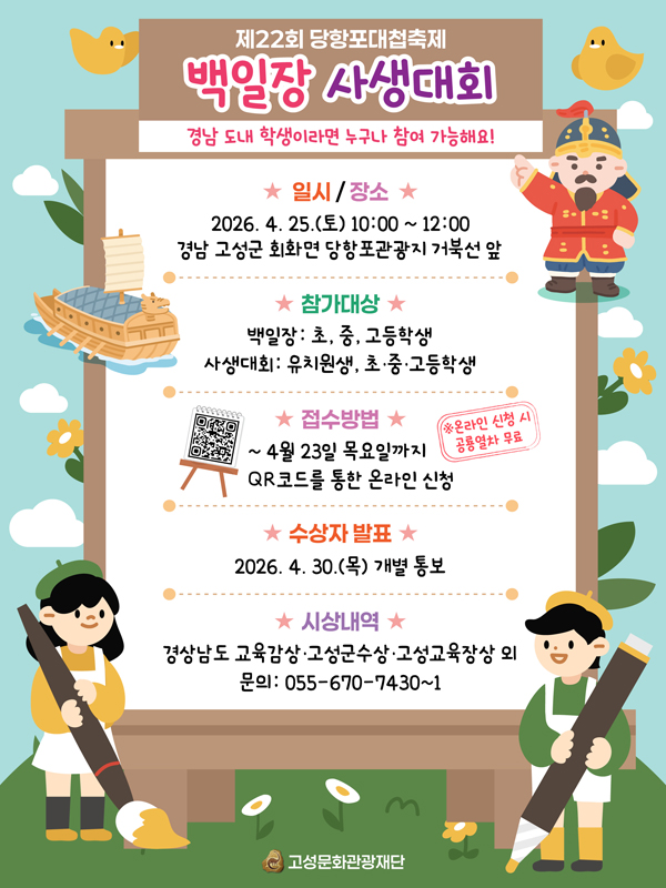 °í¼º¹®È°ü±¤Àç´ÜÀº `Á¦22ȸ ´çÇׯ÷´ëøÃàÁ¦` ±â°£ Áß Ã»¼Ò³â°ú °¡Á·ÀÌ ÇÔ²² Âü¿©ÇÒ ¼ö Àִ üÇèÇü ¿ª»ç±³À° ÇÁ·Î±×·¥À¸·Î, ¿À´Â 25ÀÏ ¿ÀÀü 10½Ã `°æ³²Çлý ¹éÀÏÀå¤ý»ç»ý´ëȸ`¿Í ¿ÀÈÄ 1½Ã `ÃÖżº°ú ÇÔ²²ÇÏ´Â ´çÇׯ÷´ëø µÎ ¹øÂ° À̾߱â`¸¦ ¿î¿µÇÑ´Ù.
