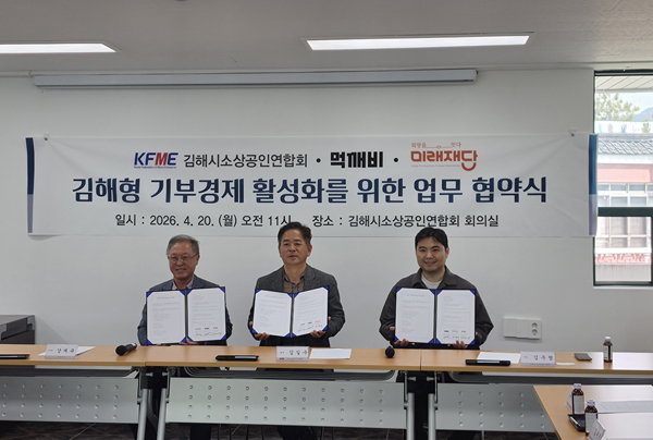 Èñ¸ÁÀ» ÀÕ´Ù ¹Ì·¡Àç´Ü, °ø°ø¹è´Þ¾Û ¸Ô±úºñ, ±èÇØ½Ã¼Ò»ó°øÀο¬ÇÕȸ°¡ `±èÇØÇü ±âºÎ°æÁ¦ Ȱ¼ºÈ¸¦ À§ÇÑ ¾÷¹«Çù¾à½Ä`À» Áö³ 20ÀÏ ¿ÀÀü ±èÇØ½Ã¼Ò»ó°øÀο¬ÇÕȸ ȸÀǽǿ¡¼ °³ÃÖÇϰí, Áö¿ª°æÁ¦ Ȱ¼ºÈ¿Í ³ª´®¹®È È®»êÀ» À§ÇÑ °øµ¿ Çù·Âü°è¸¦ °ø½Ä Ãâ¹ü½ÃÄ×´Ù.