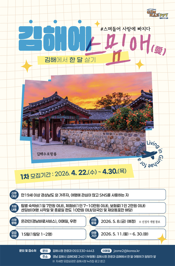 ±èÇØ½Ã´Â ¸Ó¹«¸£´Â ¿©ÇàÁö·Î µµ¾àÇϱâ À§ÇØ ±èÇØ ÇÑ ´Þ ¿©Çà ÇÁ·Î±×·¥ ¡®±èÇØ¿¡ ½º¹Ò¾Ö(äñ)¡¯ 1Â÷ Âü°¡ÀÚ¸¦ ¸ðÁýÇÑ´Ù°í ¹àÇû´Ù.