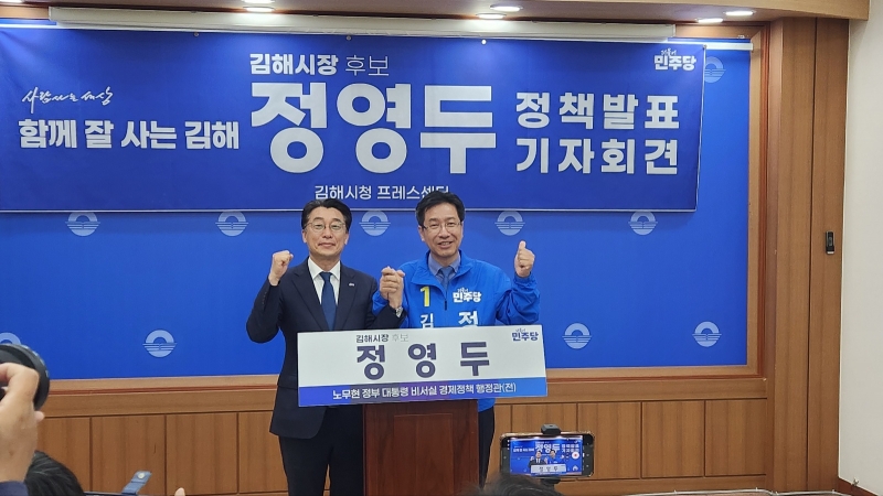 ´õºÒ¾î¹ÎÁÖ´ç Á¤¿µµÎ ±èÇØ½ÃÀå È帰¡ 22ÀÏ ¿ÀÀü ±èÇØ½Ãû ÇÁ·¹½º¼¾ÅÍ¿¡¼ ±âÀÚȸ°ßÀ» ¿°í Á¤¿µµÎ ¼±´ëÀ§ À©ÆÀ(win team) ¼±¾ðÀ» Çß´Ù.