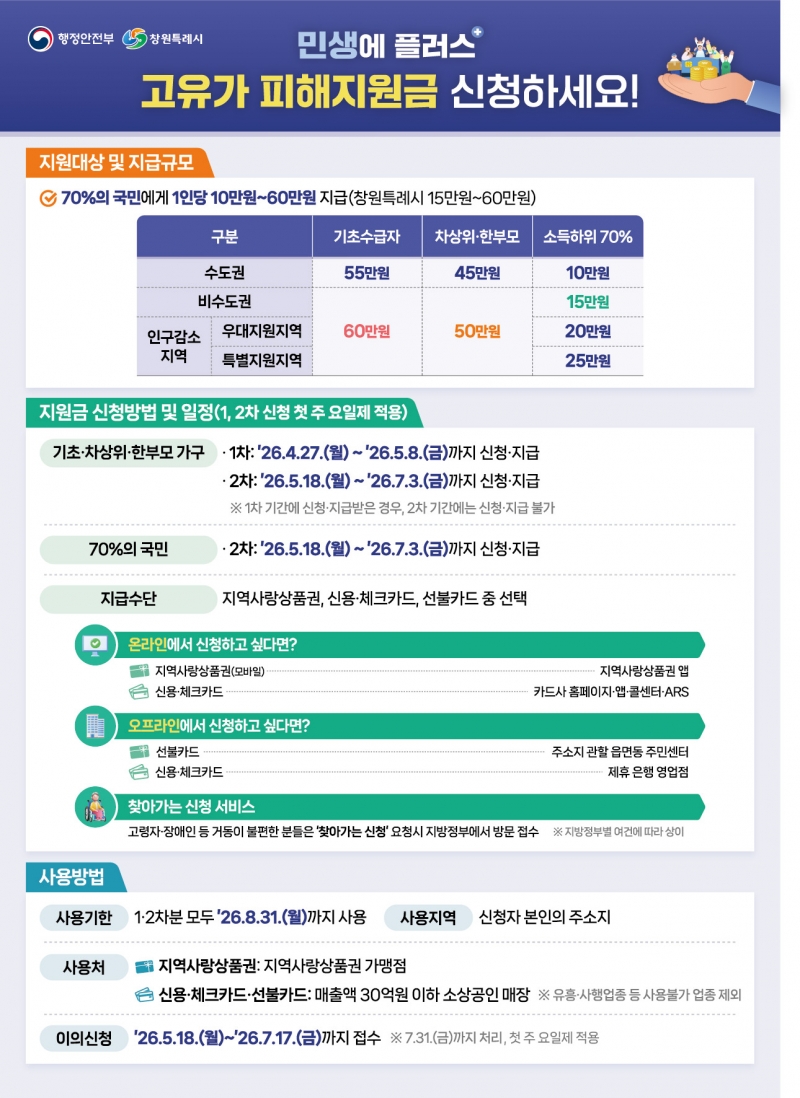 ÇÑÆí ³»´Þ 18ÀϺÎÅÍ ¿À´Â 7¿ù 3ÀϱîÁö´Â 1Â÷ Áö±Þ´ë»óÀ» Á¦¿ÜÇÑ ¼Òµæ ÇÏÀ§ 70% ½Ã¹ÎÀ» ´ë»óÀ¸·Î 2Â÷ Áö¿ø±ÝÀÇ ½Åû¤ýÁö±ÞÀÌ À̾îÁø´Ù. °Ç°º¸Çè·á¸¦ Ȱ¿ëÇÑ ¼¼ºÎ ¼±Á¤ ±âÁØ(ÄÆ¿ÀÇÁ) µî ±¸Ã¼ÀûÀÎ »çÇ×Àº 5¿ù Áß ÇàÁ¤¾ÈÀüºÎÀÇ º°µµ ÁöħÀÌ ¸¶·ÃµÇ´Â ´ë·Î È®Á¤¤ý¾È³»ÇÒ ¿¹Á¤ÀÌ´Ù.