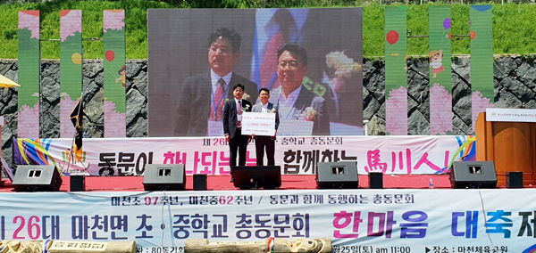 ¸¶Ãµ¸é ÃʤýÁßÇб³ Ãѵ¿¹®È¸ Çà»ç °³È¸½Ä Áß¿¡ ÁøÇàµÈ À̹ø ±âŹ½Ä¿¡¼ ±è¿µ¼± µ¿¹®È¸ÀåÀº "¸¶Ãµ Ãâ½Å µ¿¹®ÀÌ ½Ê½ÃÀÏ¹Ý ¸ðÀº ÀÛÀº Á¤¼ºÀÌ °íÇâ ÇԾ籺ÀÇ ¹ßÀü°ú Áö¿ªÀÇ ¾î·Á¿î ÀÌ¿ôµéÀ» À§ÇØ ¼ÒÁßÇÏ°Ô ¾²ÀÌ±æ ¹Ù¶õ´Ù"°í ±âŹ ¼Ò°¨À» ÀüÇß´Ù.