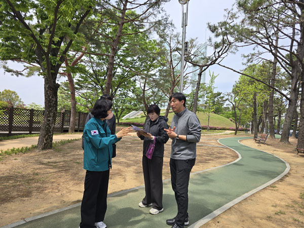 ÀÌ¾î ¿ëÁö¹®È°ø¿øÀ» ¹æ¹®ÇØ »êÃ¥·Î ÁÖº¯ ¼Ò³ª¹« °¡ÁöÄ¡±â ÀÛ¾÷ ÇöȲÀ» »ìÇÇ°í »õ·Ó°Ô Á¶¼ºµÈ ¡®È²Å亼Á¸¡¯À» Á÷Á¢ Á¡°ËÇÏ°í ½Ã¹ÎµéÀÇ ¸¸Á·µµ¸¦ È®ÀÎÇÏ¿´´Ù.