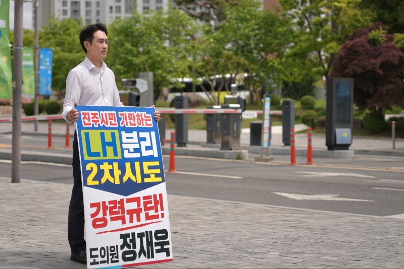 Á¤Àç¿í °æ³²µµÀÇȸ ÀÇ¿ø(±¹¹ÎÀÇÈû, ÁøÁÖ1)ÀÌ ÃÖ±Ù ´Ù½Ã Á¦±âµÇ°í ÀÖ´Â Çѱ¹ÅäÁöÁÖÅðø»ç(LH) ºÐ¸® ³íÀÇ¿¡ ¹Ý¹ßÇØ 1ÀÎ ½ÃÀ§¿¡ ³ª¼¹´Ù.